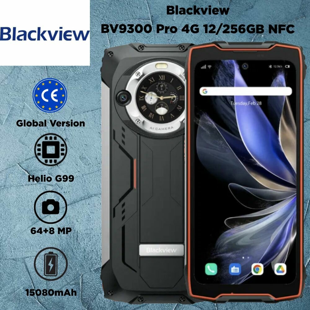 Смартфон Blackview bv9300 pro, 12/256ГБ, global, Official Standard, Blackview, bv9300 pro, Смартфон, Оранжевый, 12ГБ, 256ГБ, global, новый, 01.10.2023