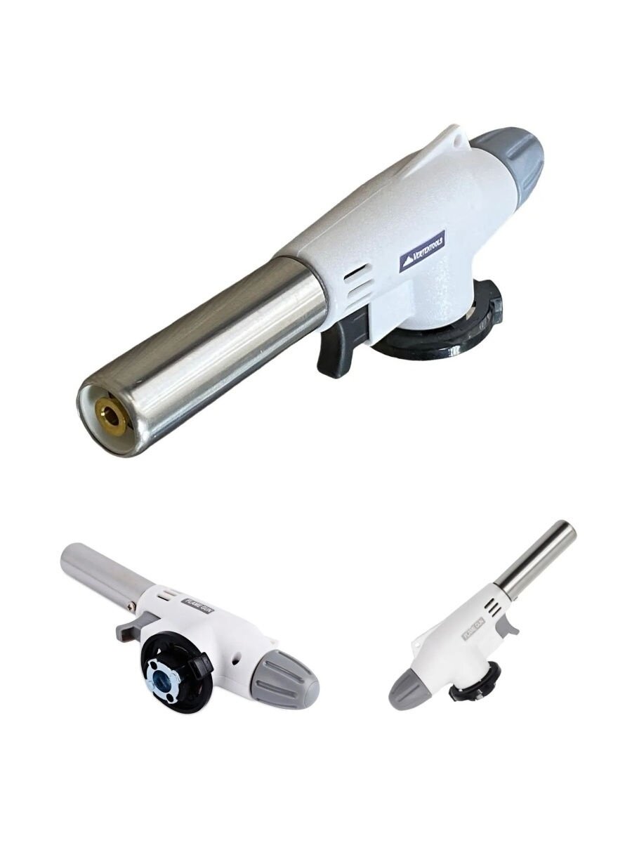 Газовая горелка, туристическая горелка с пьезоподжигом, автоматическая, для розжига FLAME GUN белая 920 интересное:
