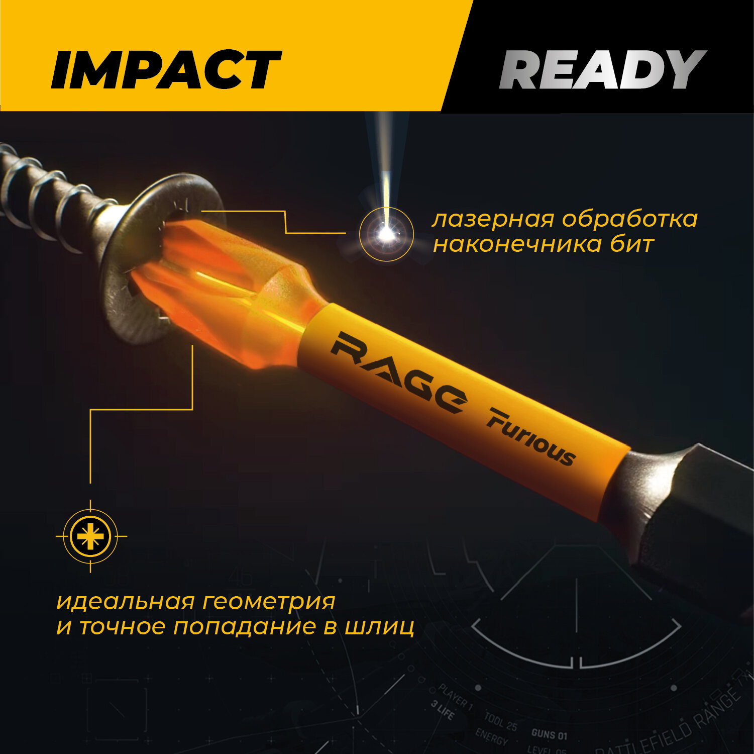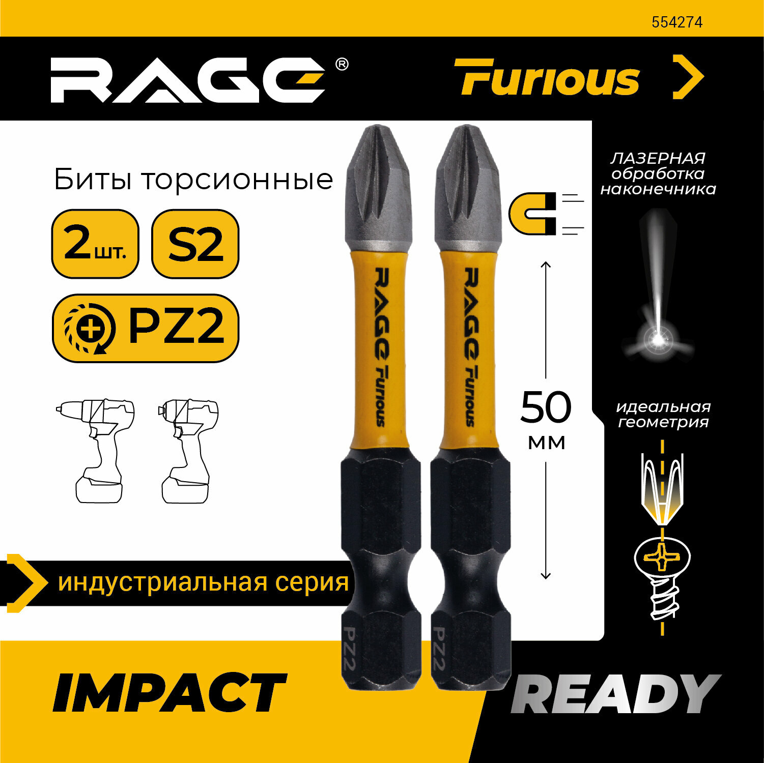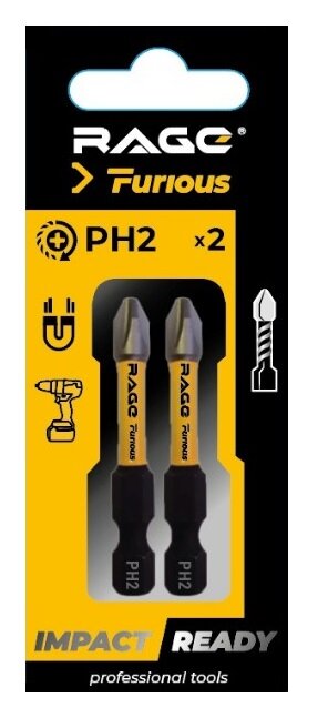 Биты торсионные IMPACT PZ2 x 50 мм 2 шт RAGE Furious