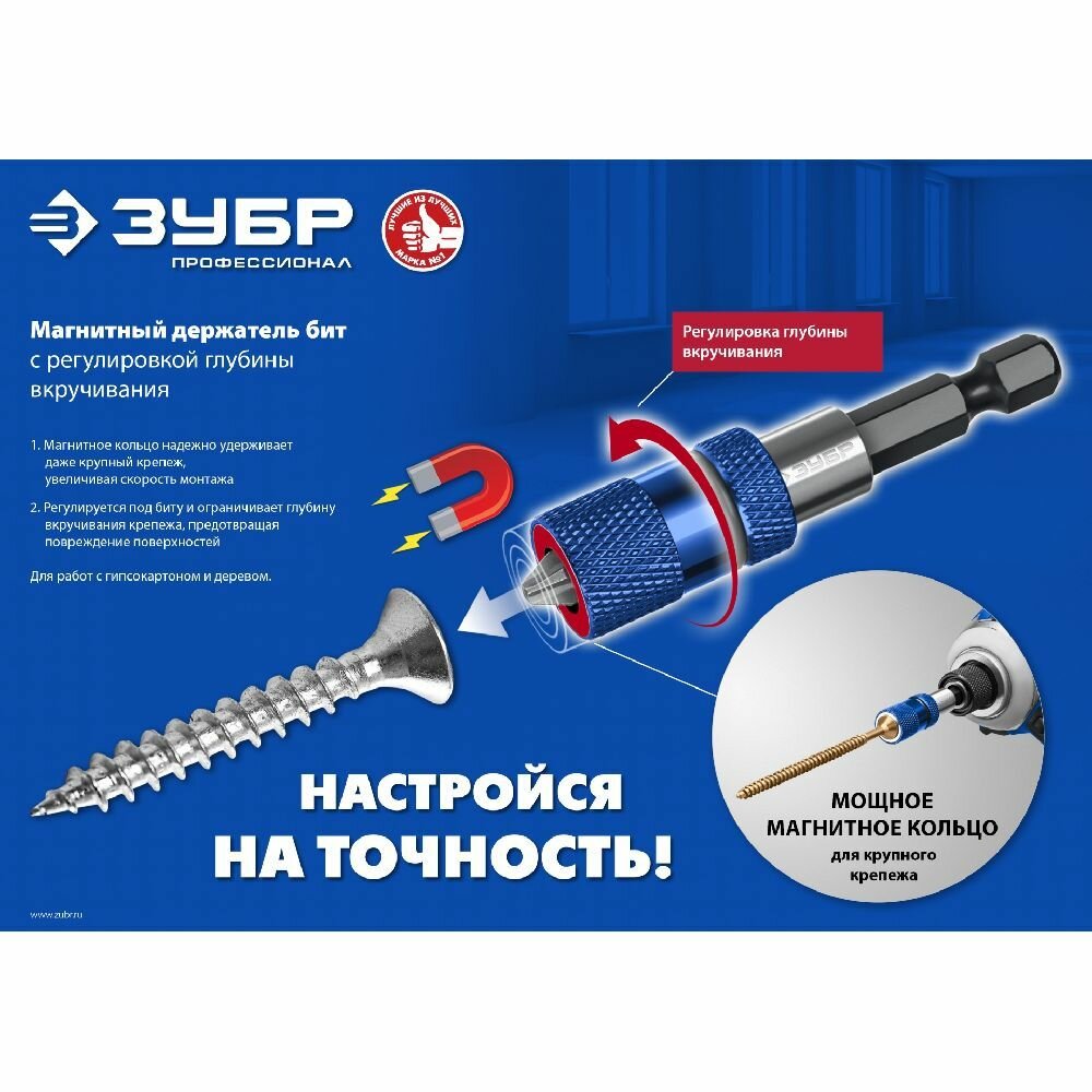 Адаптер ЗУБР магнитный с регулировкой глубины вкручивания для гипсокартона интересное: