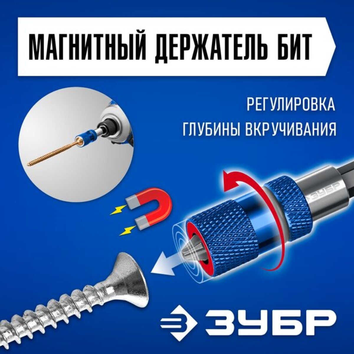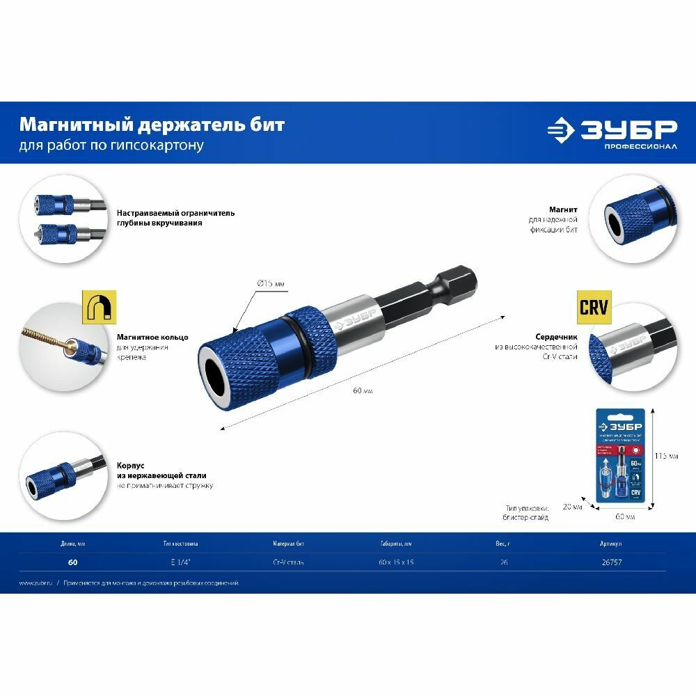 Купить Адаптер ЗУБР магнитный с регулировкой глубины вкручивания для гипсокартона