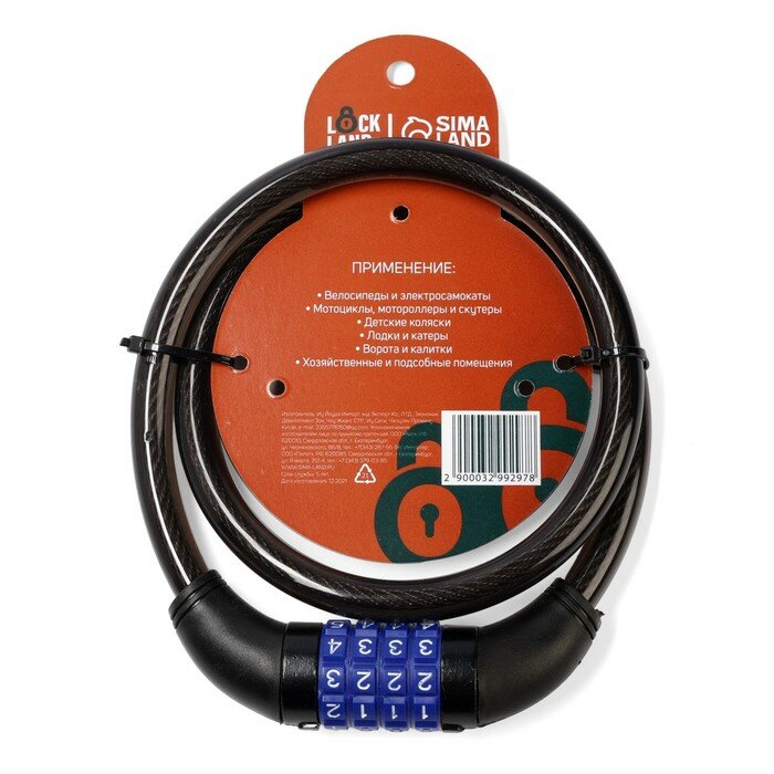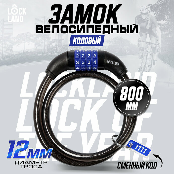 Замок навесной велосипедный LOCKLAND, кодовый, 12 х 800 мм (арт. 3299297)