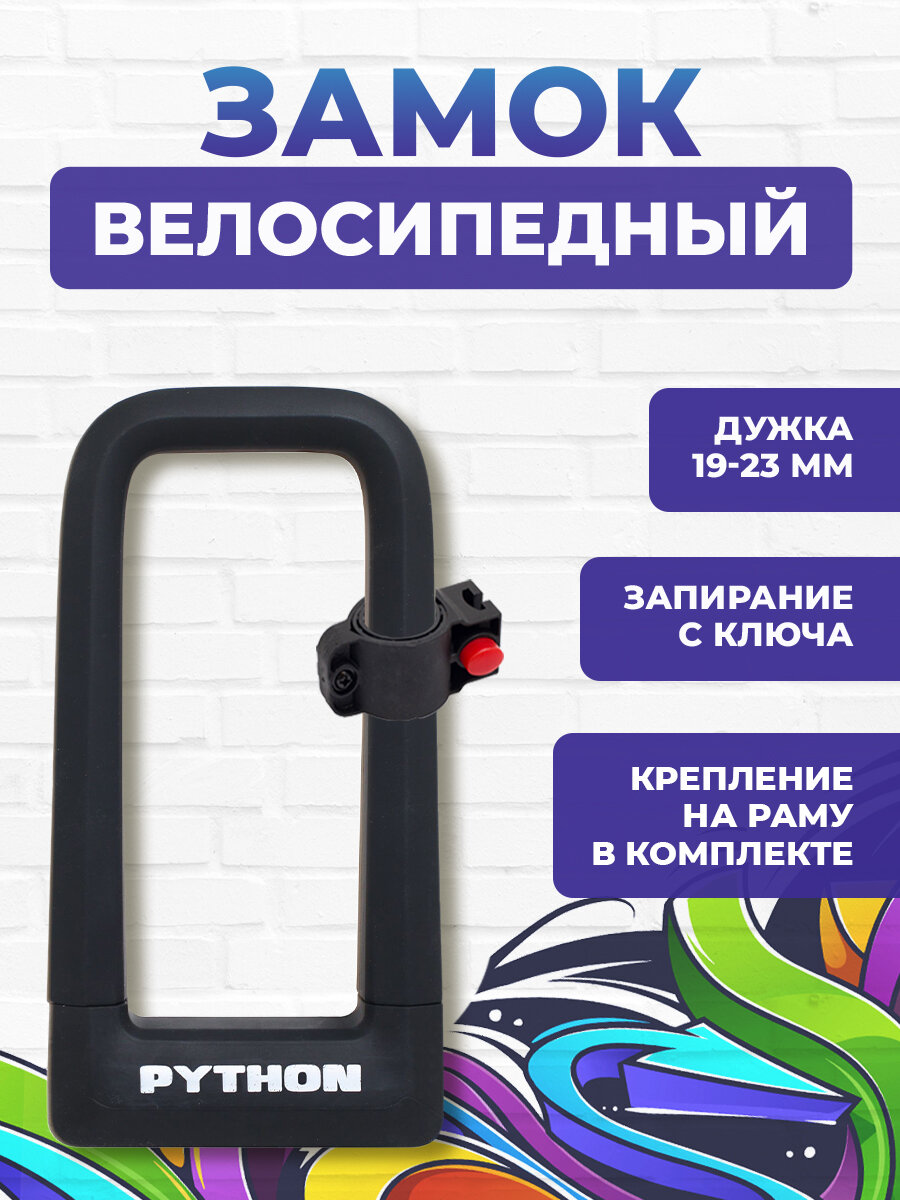 Замок велосипедный всепогодный U-lock авангард PYTHON 626 BLACK крепление в комплекте