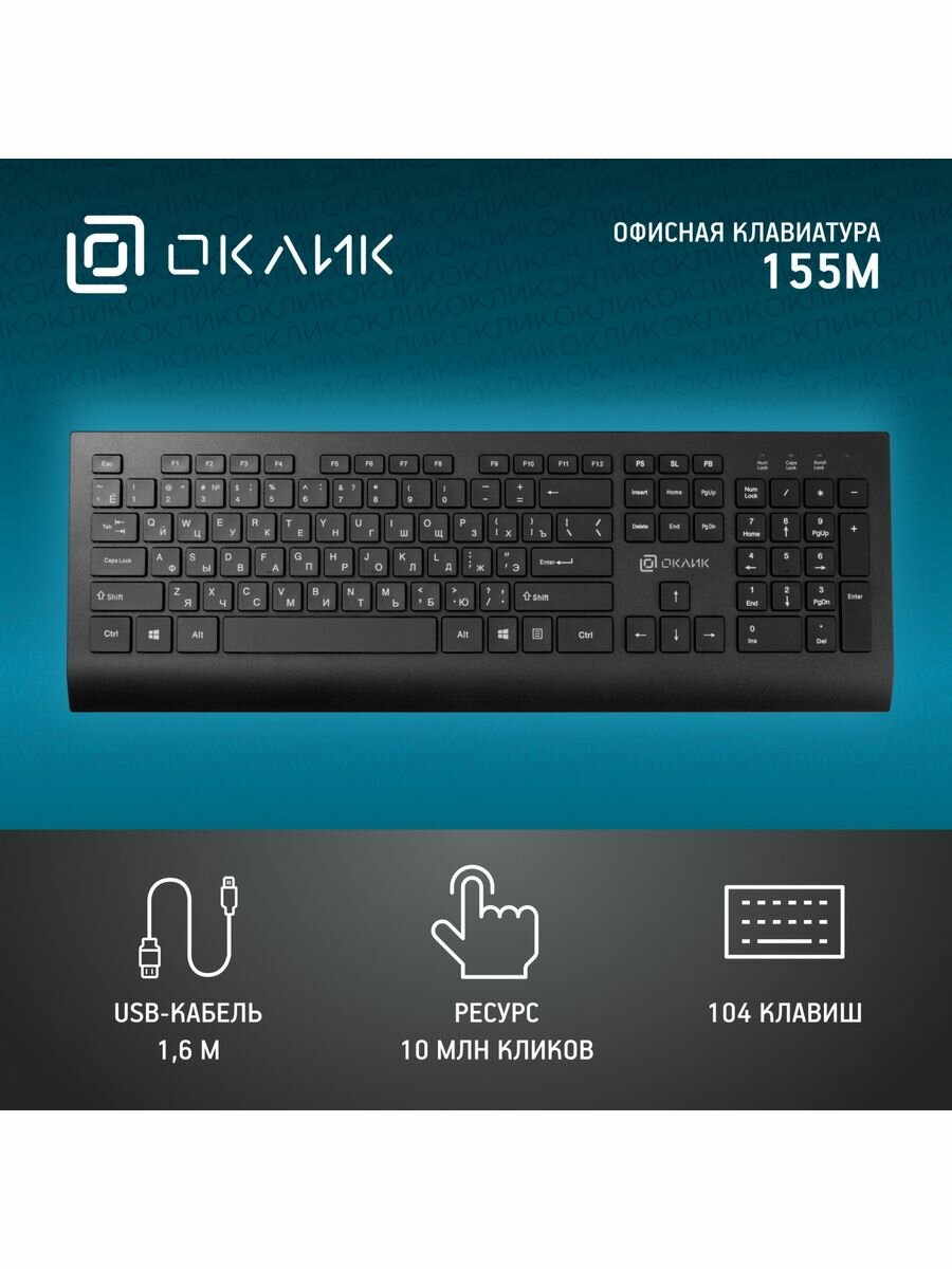 Клавиатура Oklick 155M, USB, c подставкой для запястий, черный [1678057]