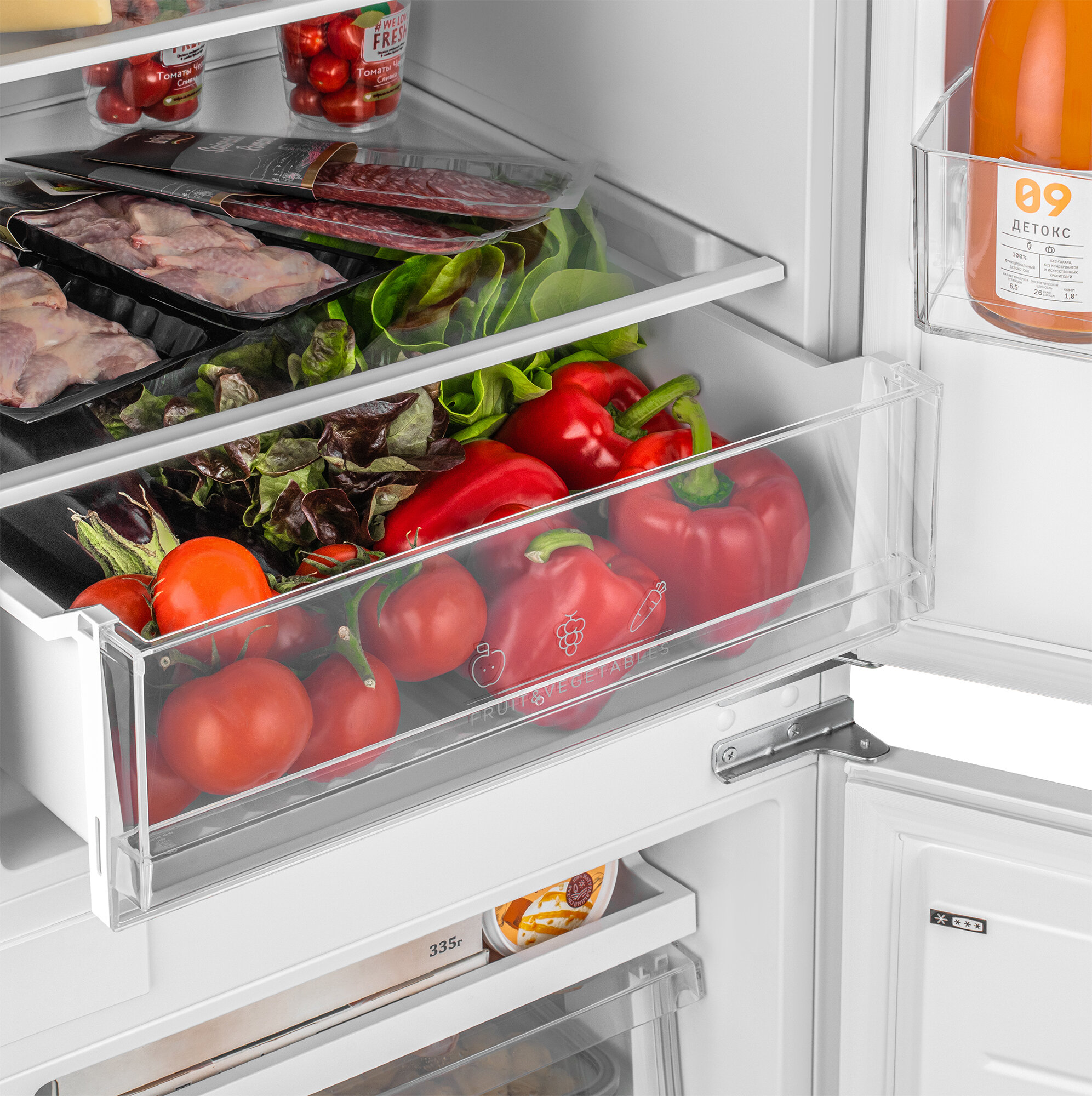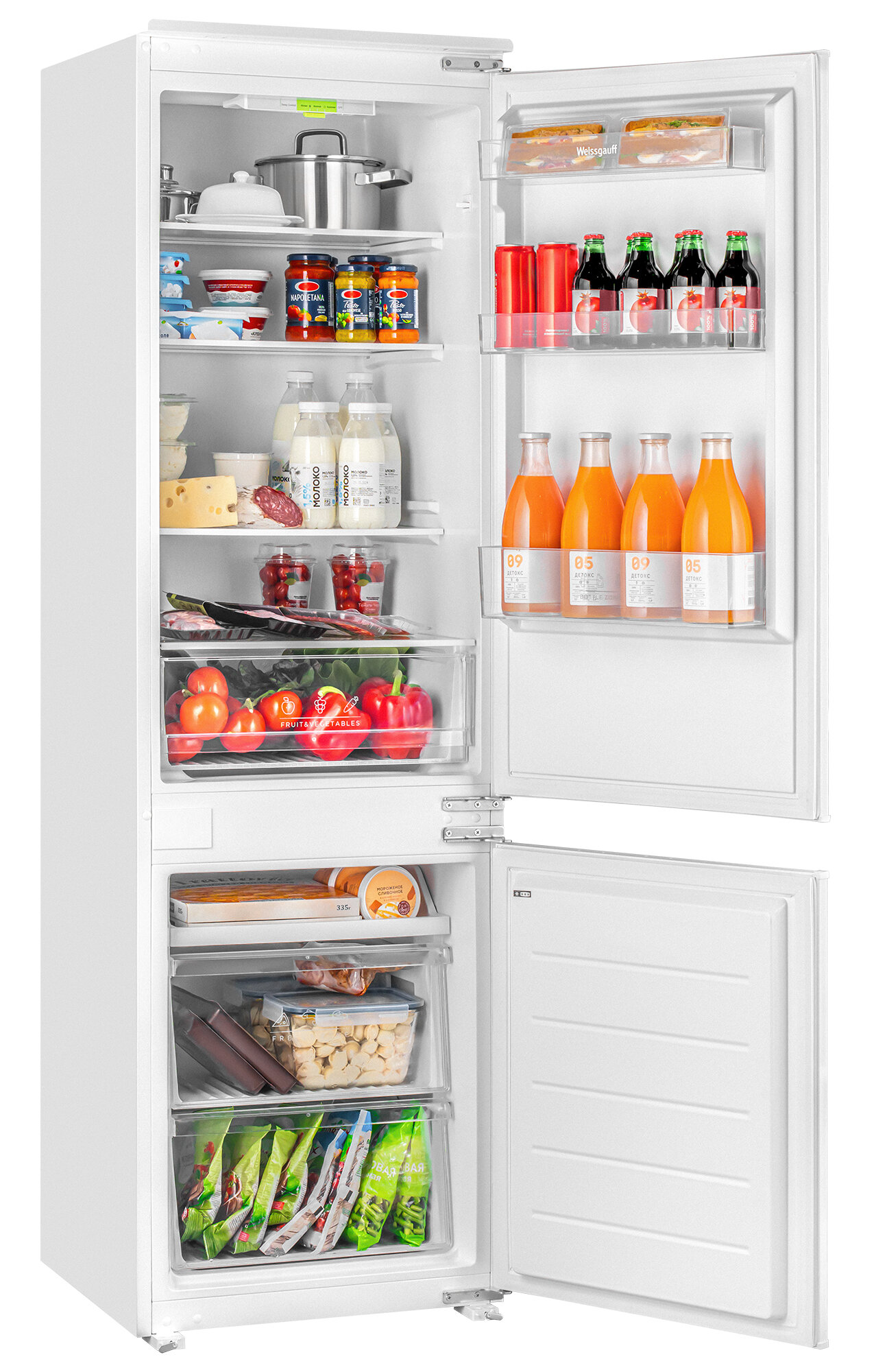 Встраиваемый холодильник Weissgauff WRKI 178 LowFrost двухкамерный, 3 года гарантии, Высота 178 см, ширина 54, Объём 271 л, Сохранение холода 8 часов, LED освещение, Перенавешиваемая дверь, Полки из закаленного стекла, A+ интересное: