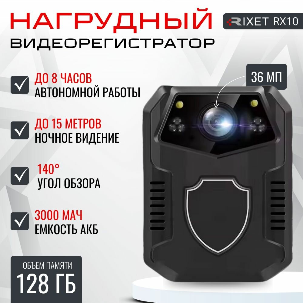 Купить Нагрудный видеорегистратор Rixet RX10 128 Гб Full HD с ночным видением, персональный носимый регистратор на одежду с обзором 140
