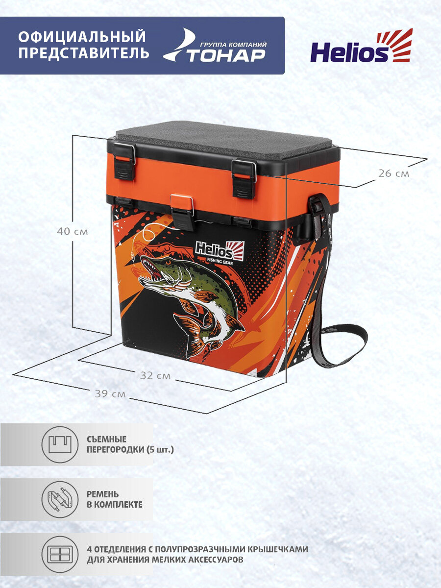 Ящик рыболовный зимний PIKE оранжевый Helios интересное:
