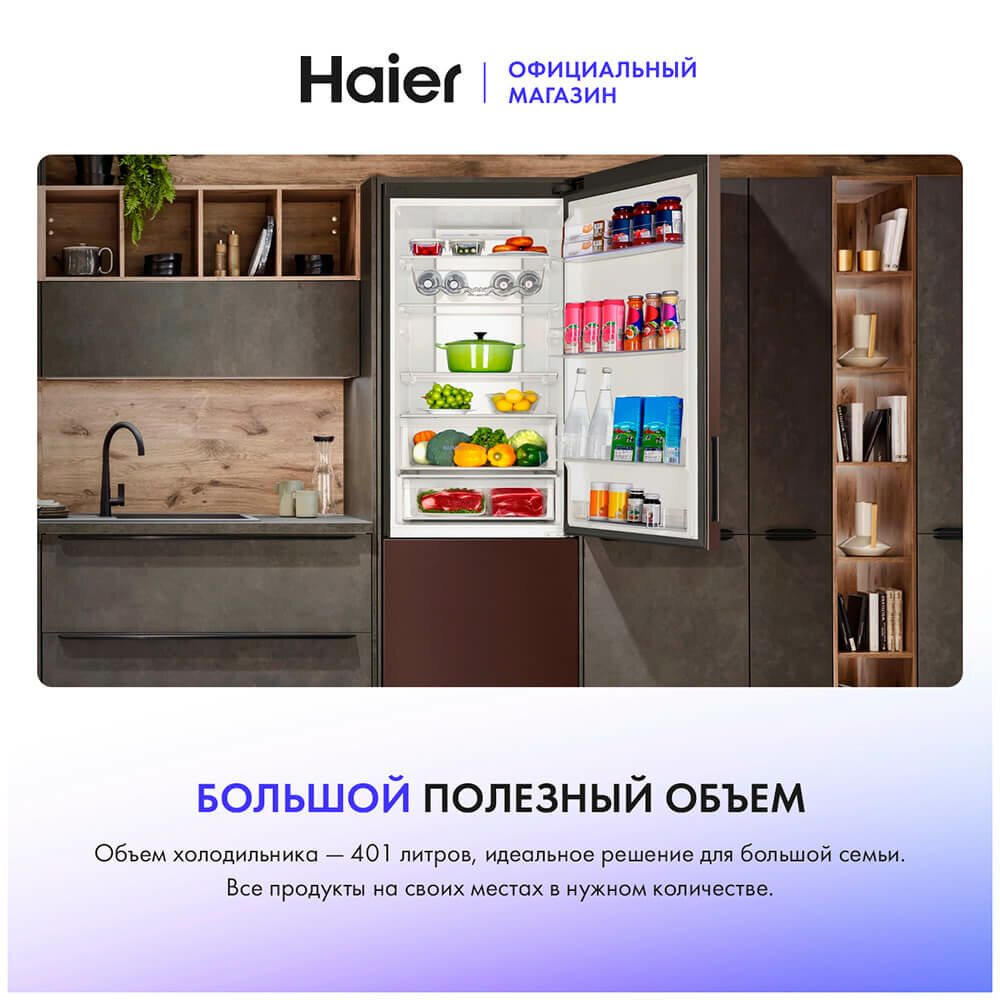 Двухкамерный холодильник Haier C4F740CLBGU1 темно-коричневый интересное: