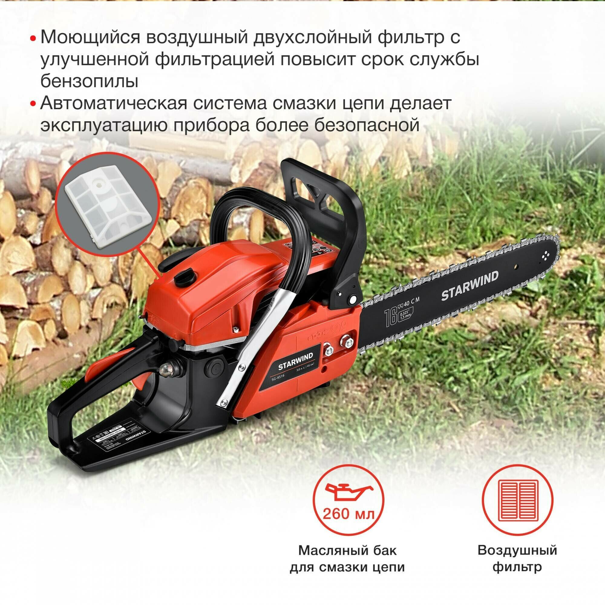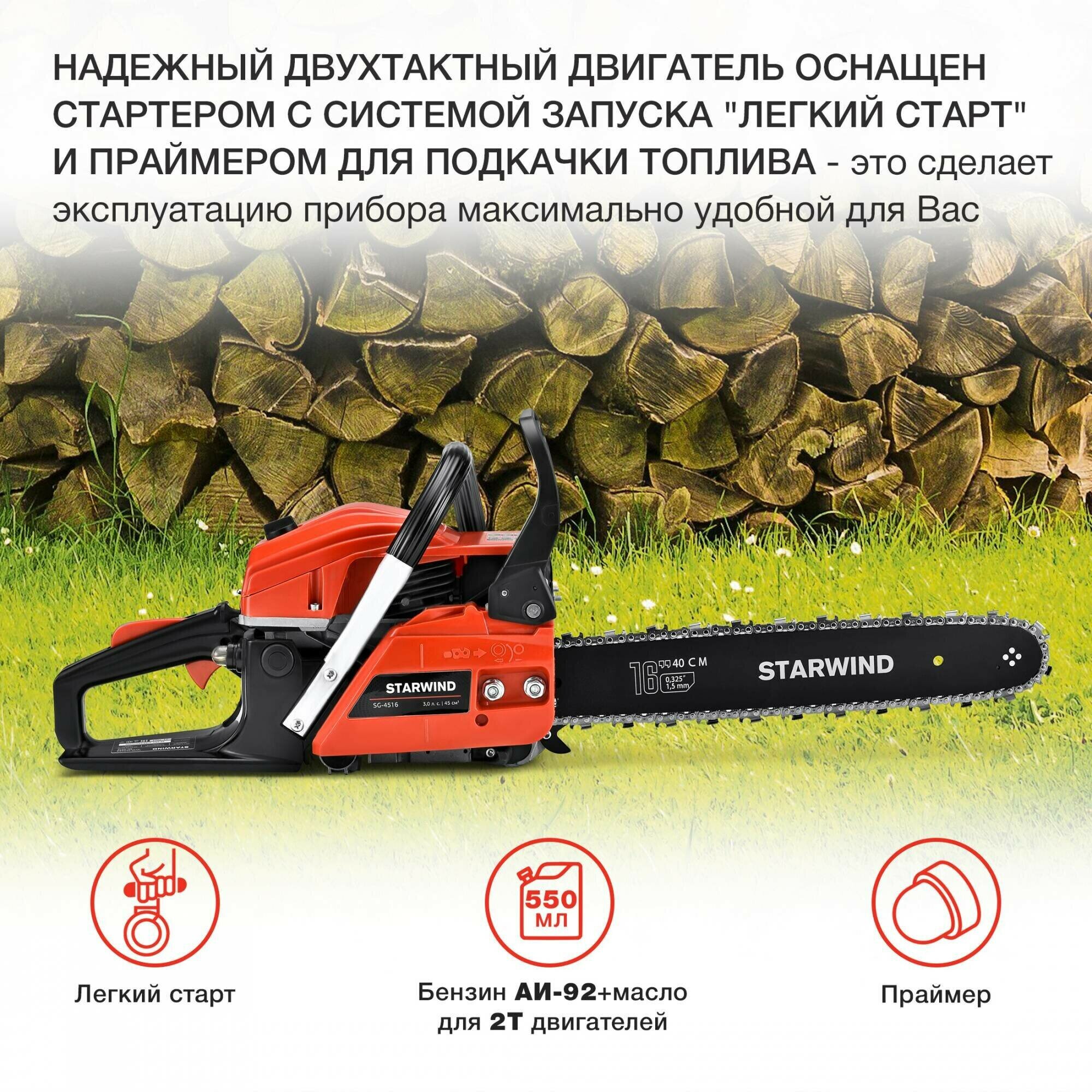 Бензопила Starwind SG-4516 2200Вт 3л.с. дл.шины:16" (40cm) интересное:
