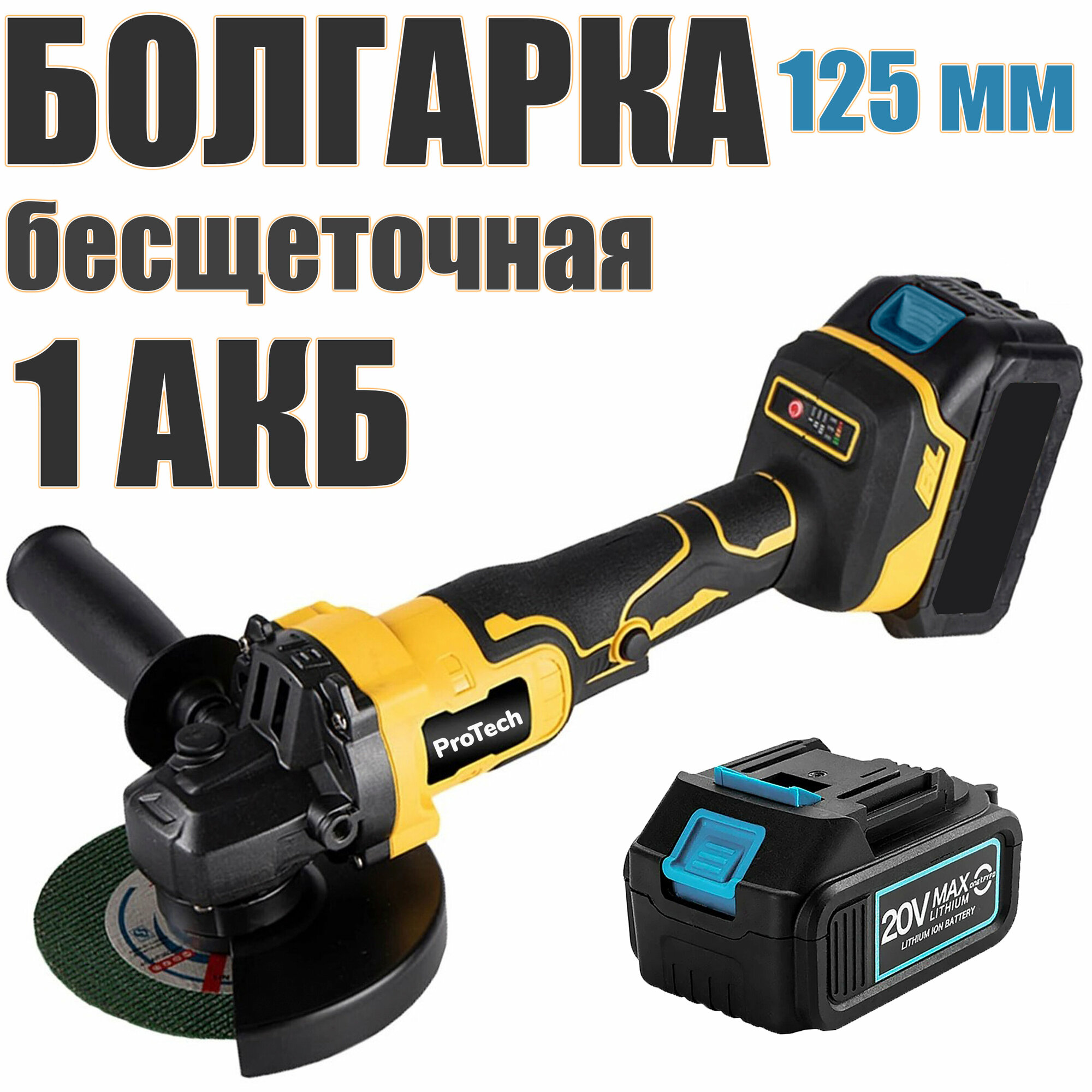 Аккумуляторная УШМ (болгарка) ProTech 10000/125 мм c АКБ-1шт 20V 4.0 Ah Li-ion, адаптирована к АКБ Makita LXT интересное: