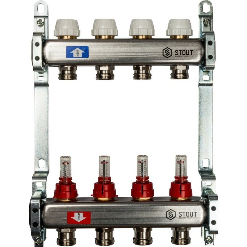 Купить Коллекторная группа из нержавеющей стали с расходомерами на 4 выхода STOUT (SMS 0917 000004)