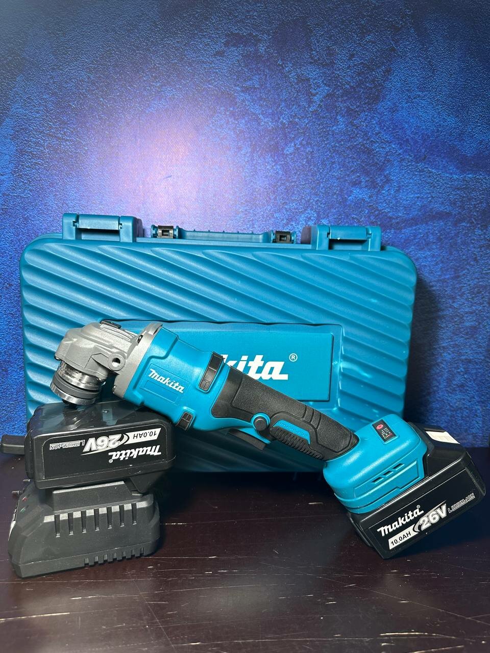 Болгарка на 26В с двумя аккумуляторами и кейсом интересное: