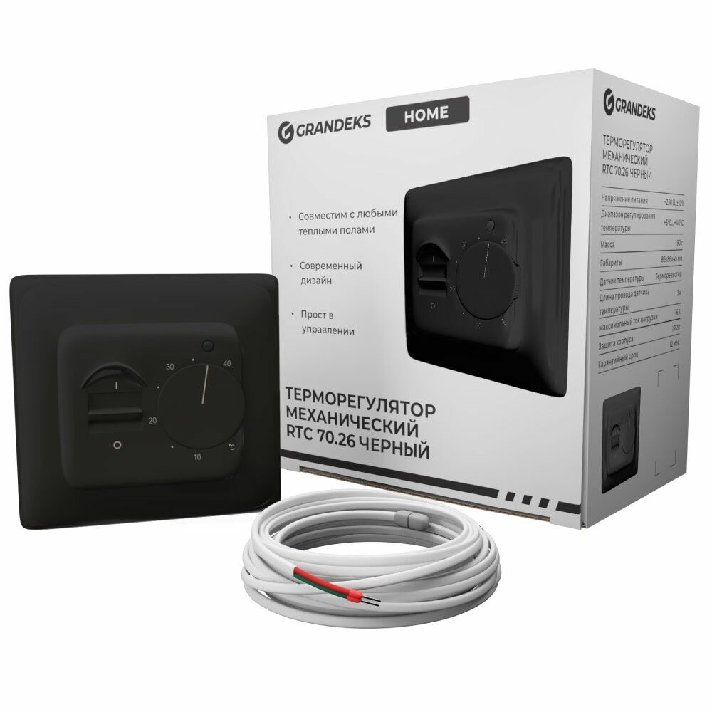 Терморегулятор Grandeks RTC 70.26 механический чёрный