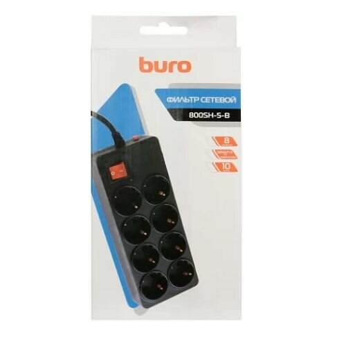 Купить Сетевой фильтр Buro 800SH-5-B 5м (8 розеток) черный (коробка)