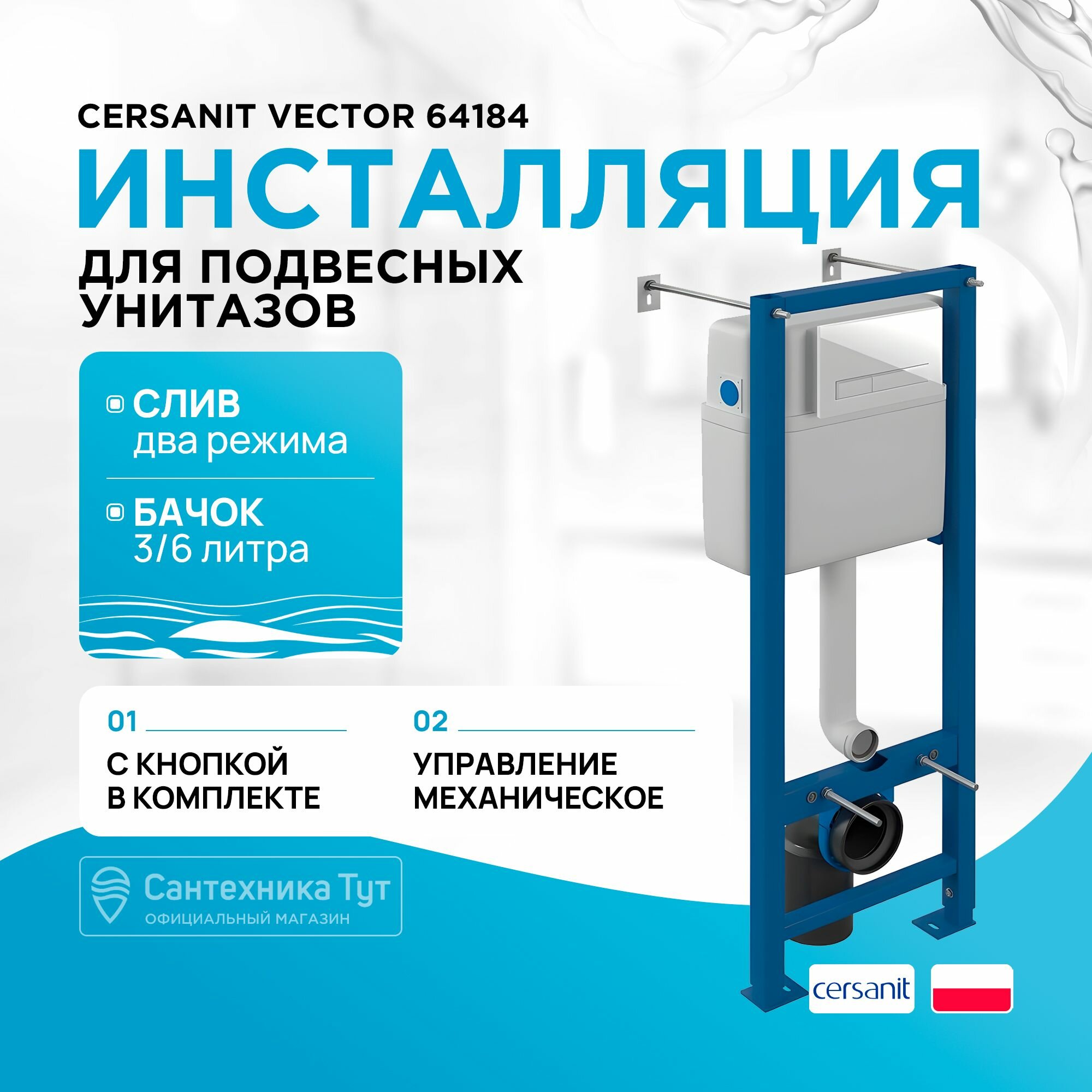 Система инсталляции для унитазов Cersanit Vector 64184 с кнопкой смыва, белая /64184 интересное: