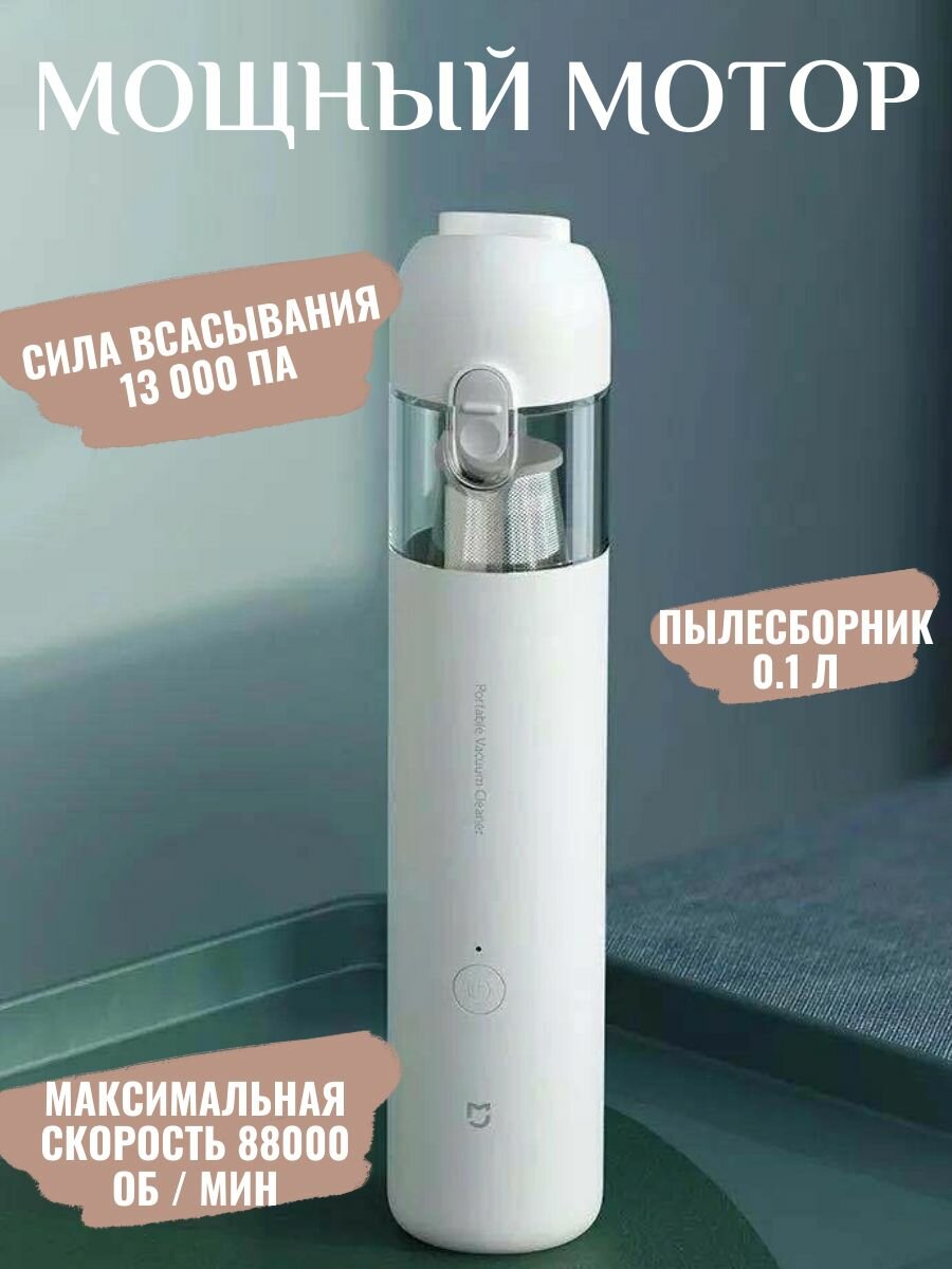 Пылесос портативный автомобильный Xiaomi Mijia Vacuum Cleaner mini, ручной пылесос xiaomi, режим Турбо