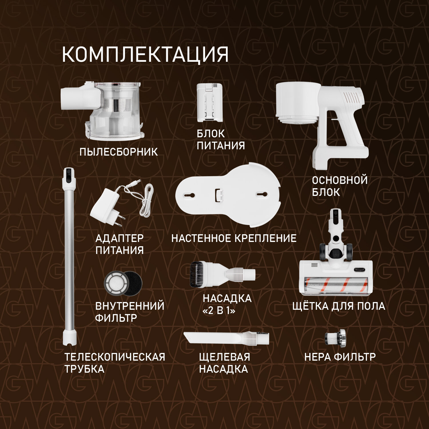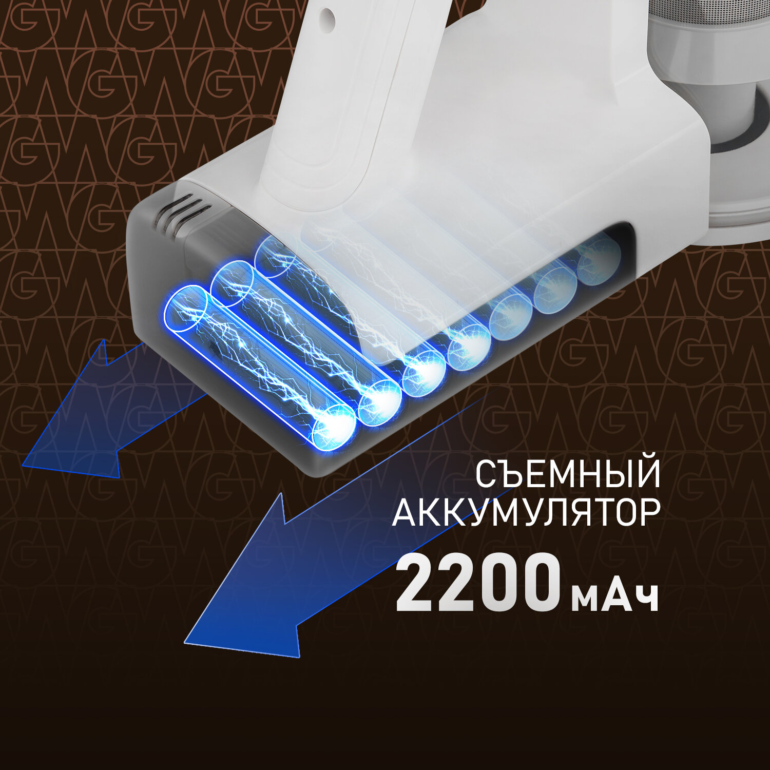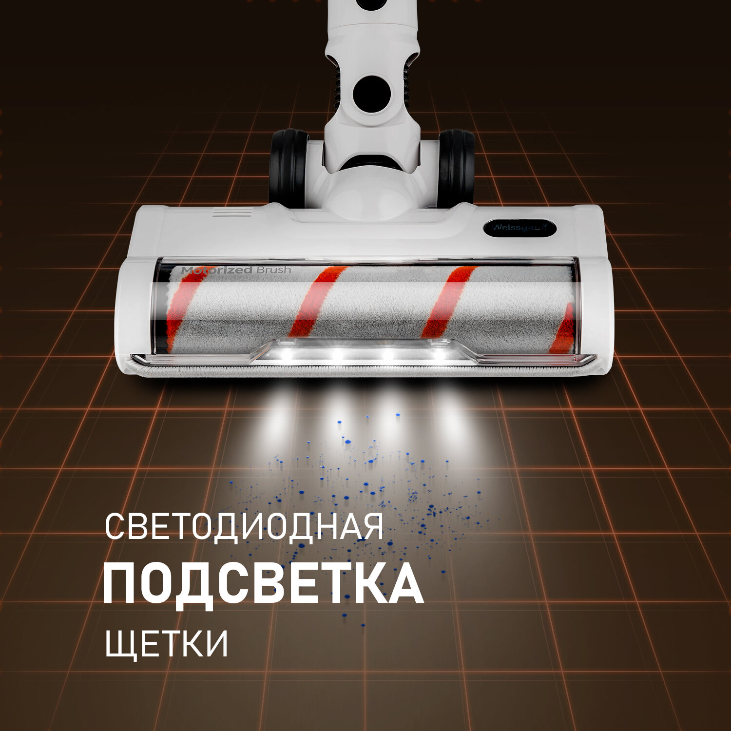 Вертикальный беспроводной пылесос Weissgauff V11 BLDC Turbo Cyclone, 3 года гарантии, инверторный мотор, мощность 280 Вт, Тихий режим, съёмный аккумулятор 2200 мАч, Турбо щётка с LED подсветкой зоны уборки