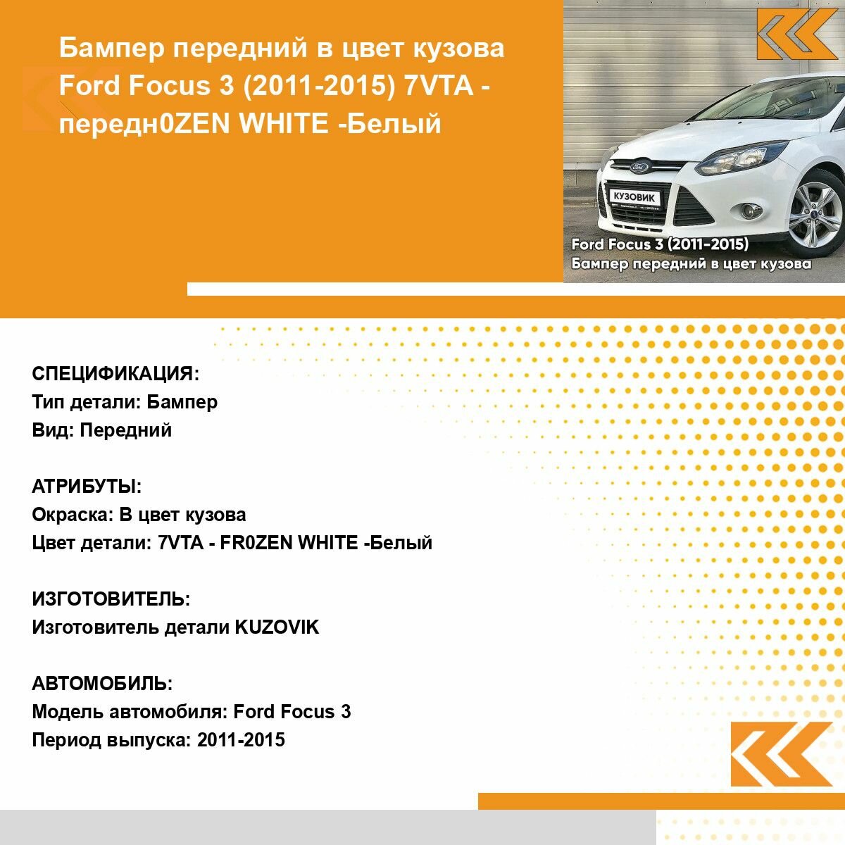 Купить Бампер передний в цвет кузова Ford Focus Форд Фокус 3 7VTA - FR0ZEN WHITE - Белый