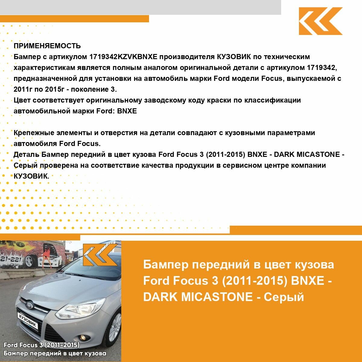 Ниже Вы можете прочитать отзывы на Бампер передний в цвет кузова Ford Focus Форд Фокус 3 BNXE - DARK MICASTONE - Серый, ознакомится с подробными характеристиками, посмотреть интересные обзоры и фотографии на Бампер передний в цвет кузова Ford Focus Форд Фокус 3 BNXE - DARK MICASTONE - Серый.