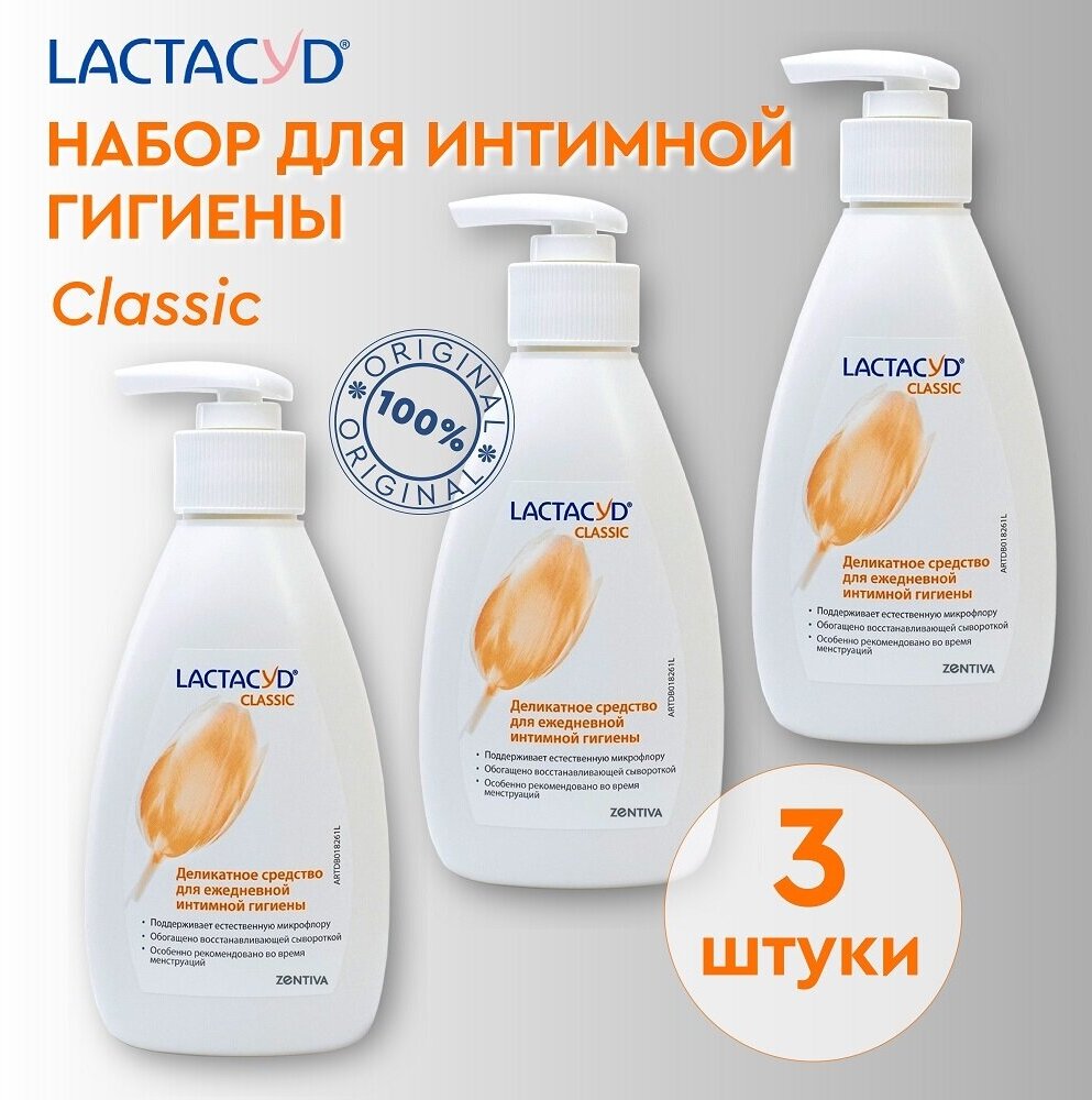 Купить Lactacyd набор для интимной гигиены: гель для интимной зоны для женщин Лактацид Классик, 200мл, 3шт, pH 5.2