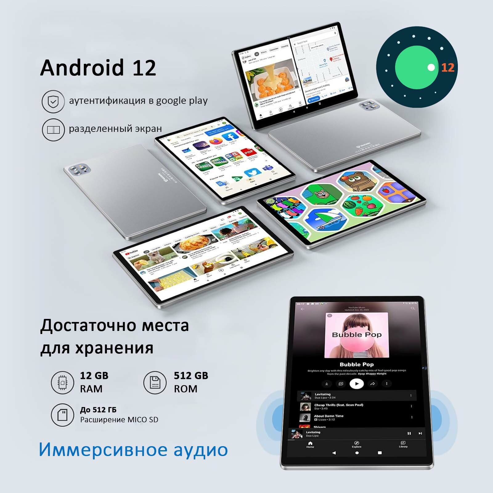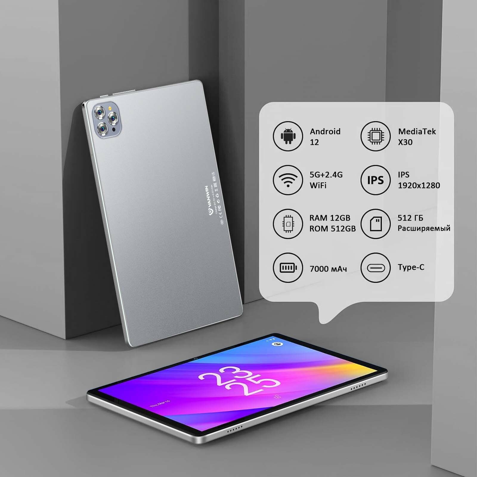 10.1" Планшет VANWIN Pad V62(2024), 12/512ГБ, Wi-Fi, Android 12, серебристый