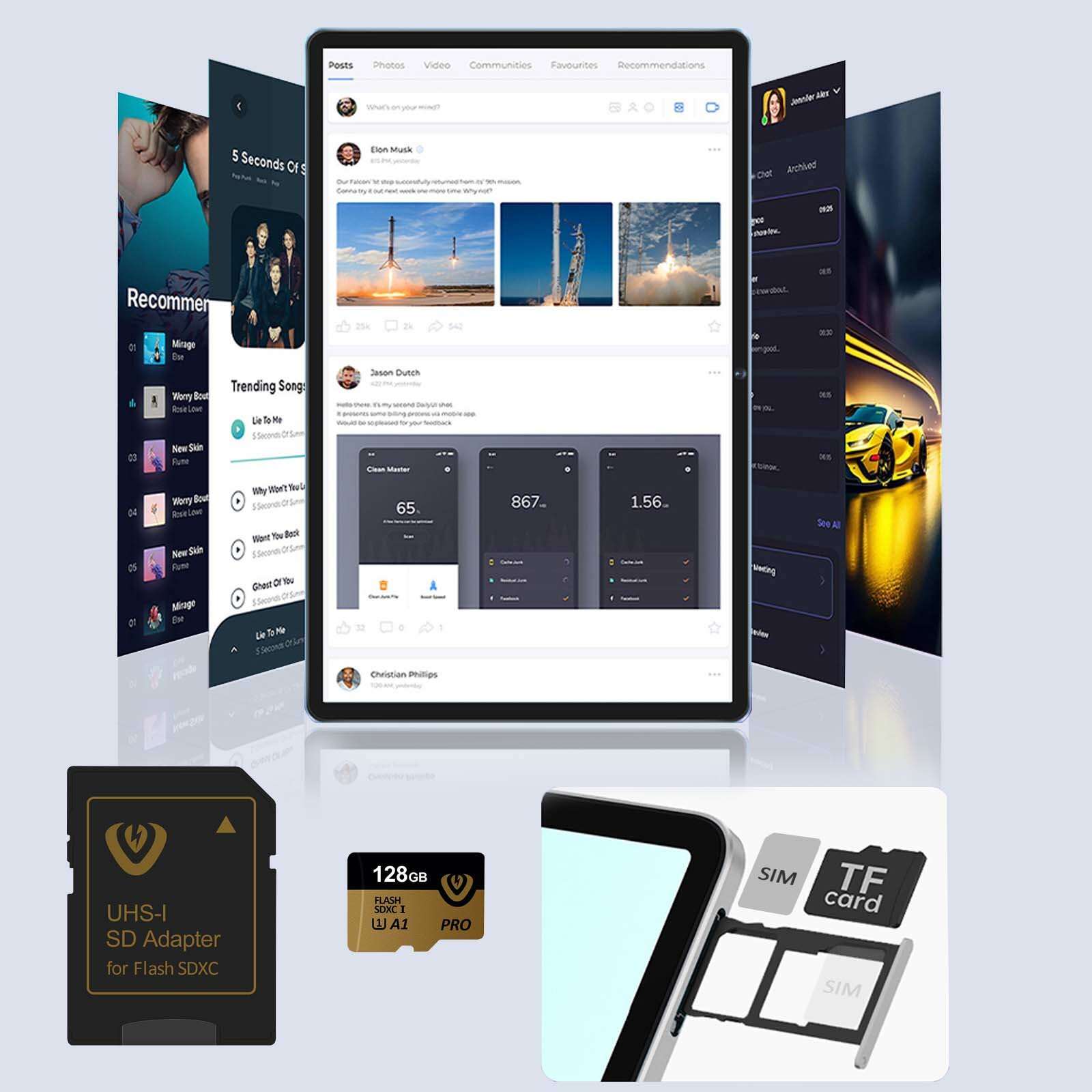 | Комплектация | планшет; зарядное устройство; кабель USB-C; OTG-удлинитель; стилус; проводные наушники; Bluetooth-клавиатуру; чехол для планшета; карту памяти на 128 ГБ; сумку для хранения и переноски планшета; руководство пользователя. |