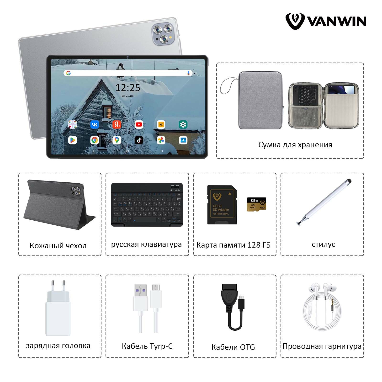 Планшет VANWIN Pad V62(2024), 10.1" 12/512ГБ,Wi-Fi, Android 12, Черный,планшет с клавиатурой