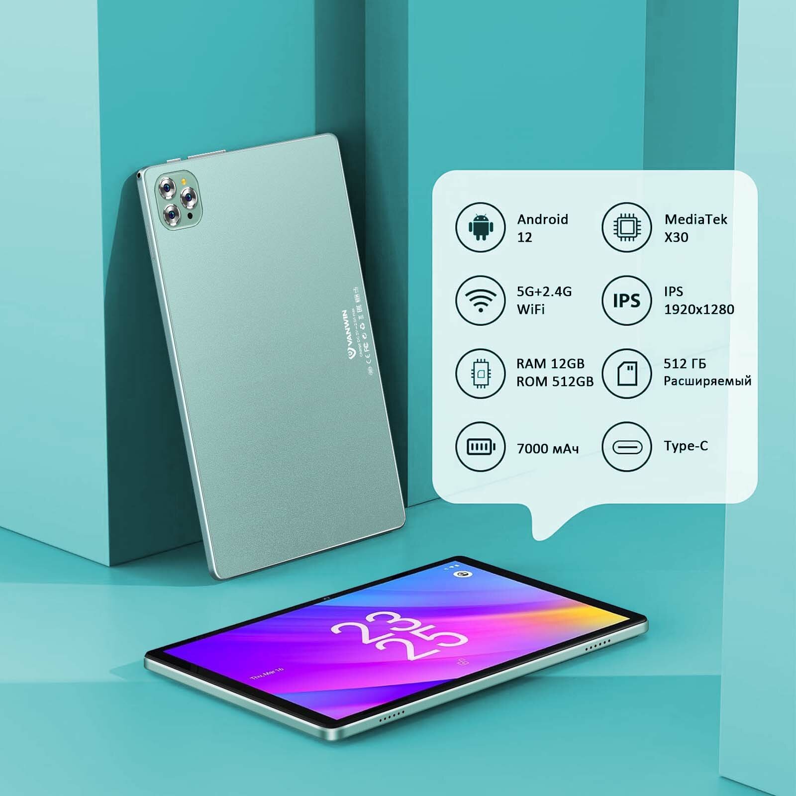 Купить Планшет VANWIN Pad V62(2024), 10.1" 12/512ГБ, Wi-Fi, Android 12, Зеленый,планшет с клавиатурой