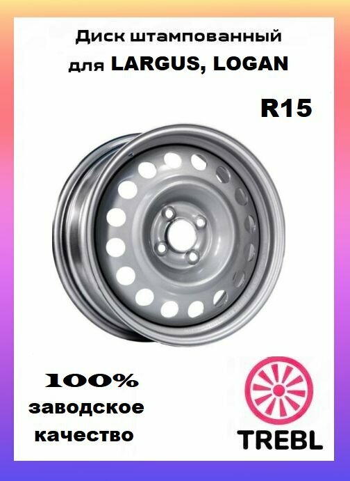 Диск штампованный TREBL 64A50C Silver 6x15 4x100 ET50 ст60,1 Logan new TREBL64A50CSilver
