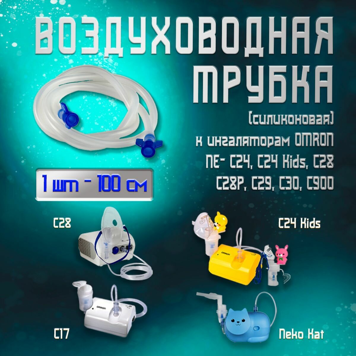 Воздуховодная трубка (силиконовая) к ингаляторам OMRON для NE- С24/C24 Kids/С28/C28P/С29/С30/C900 100 см