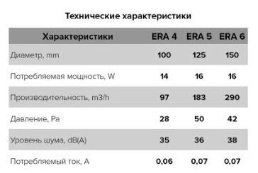 ERA Optima 5C, Вентилятор осевой вытяжной .