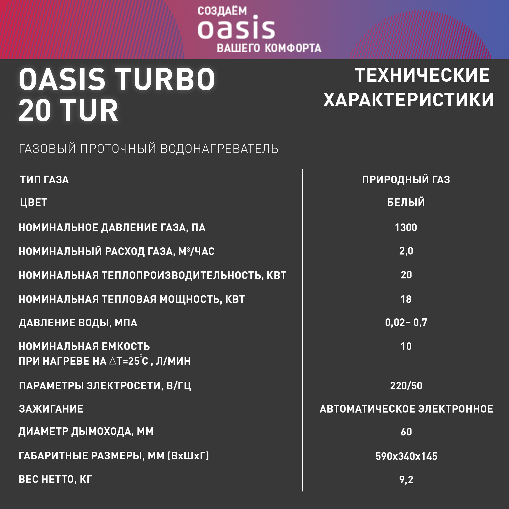 Водонагреватель OASIS Водонагреватель GAS 10L/MIN 20 TUROASIS
