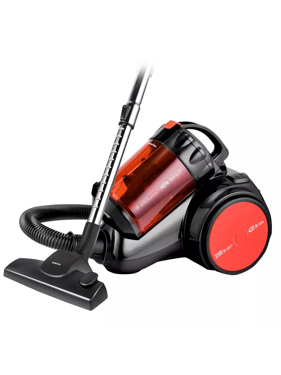 Пылесос CENTEK CT-2523 (черный/красный, 2400/420Вт, Турбоциклон, Hepa фильтр)