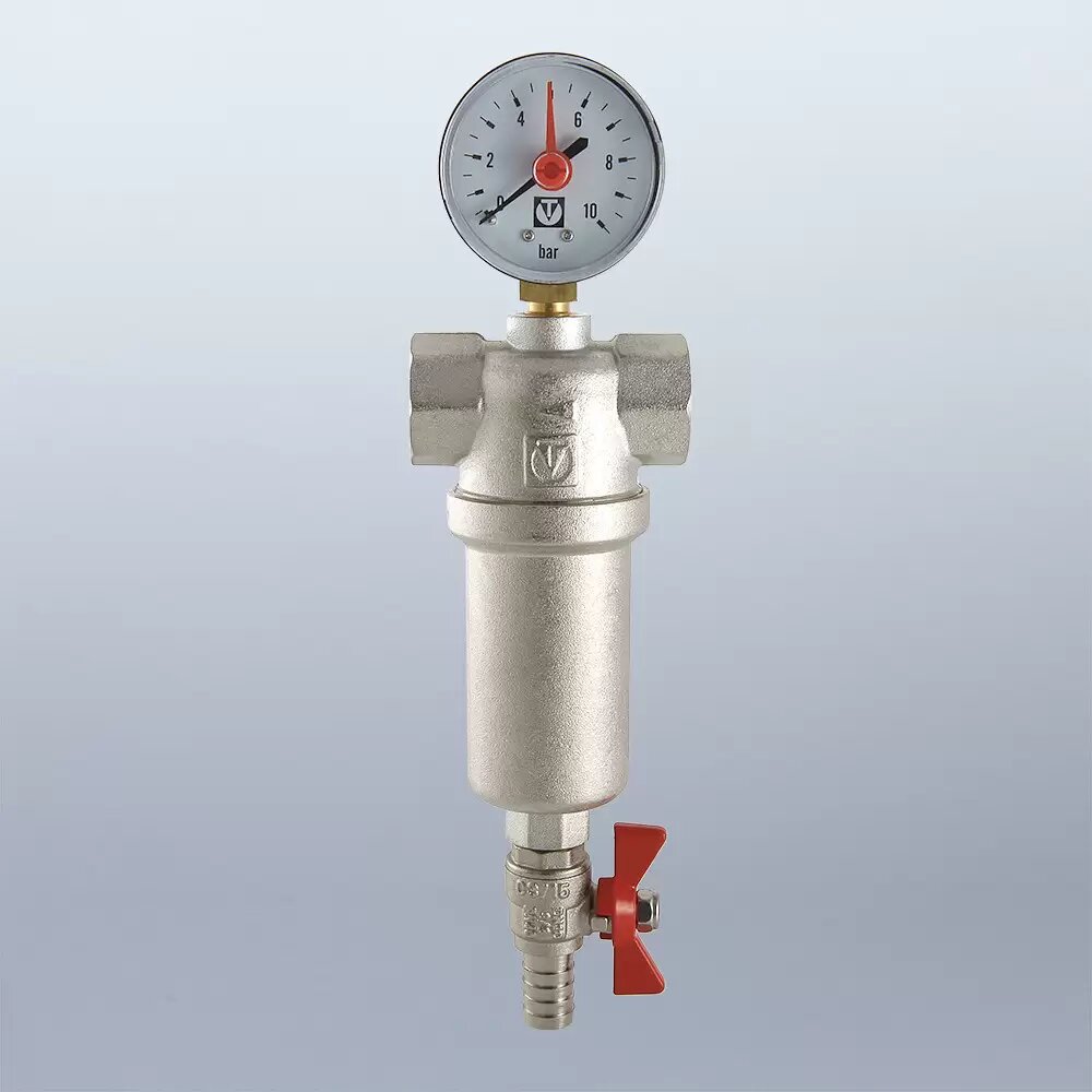 Фильтр самоочищающийся промывной 1/2" с манометром VALTEC VT.389.N.04