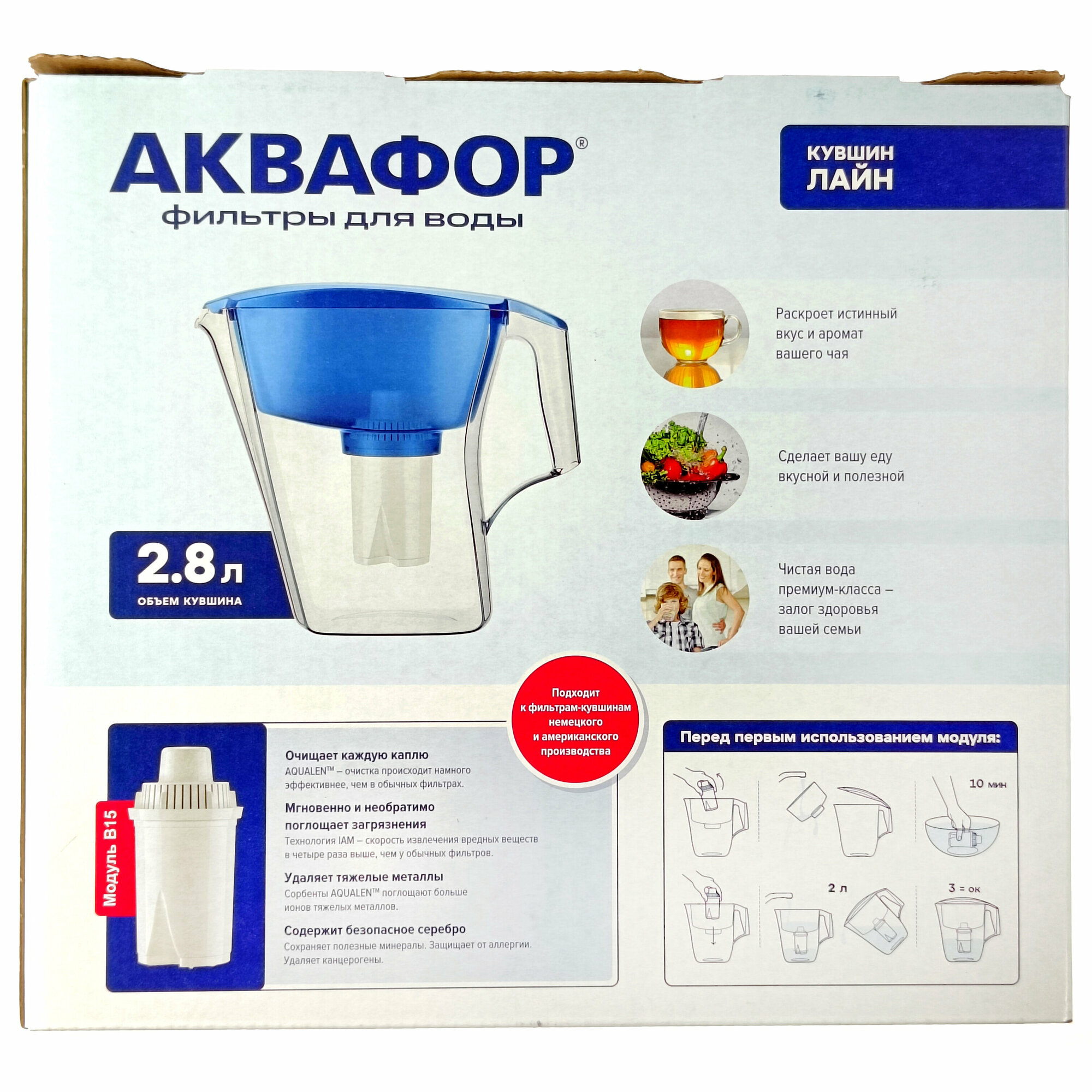 Фильтр-кувшин Аквафор "Лайн" 2,8 литра с модулем В15 / голубой
