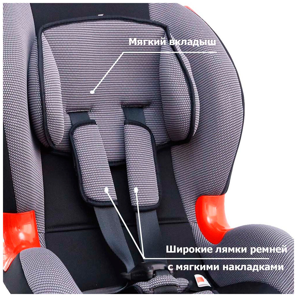 - Есть регулировка наклона спинки - 5 точечный ремень с накладками для паховой и плечевой зоны - Фиксация основания ремнём автомобиля (делается один раз, а далее пользуемся 5 точечным) - Относительно не высокая цена |