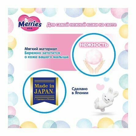 Подгузники MERRIES для детей размер М 6-11кг, 76 шт