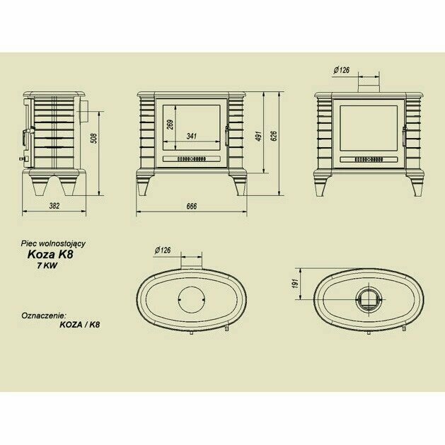 Печь чугунная Kratki Koza/K8, материал: Чугун, цвет: черный, 60x85x80 см.
