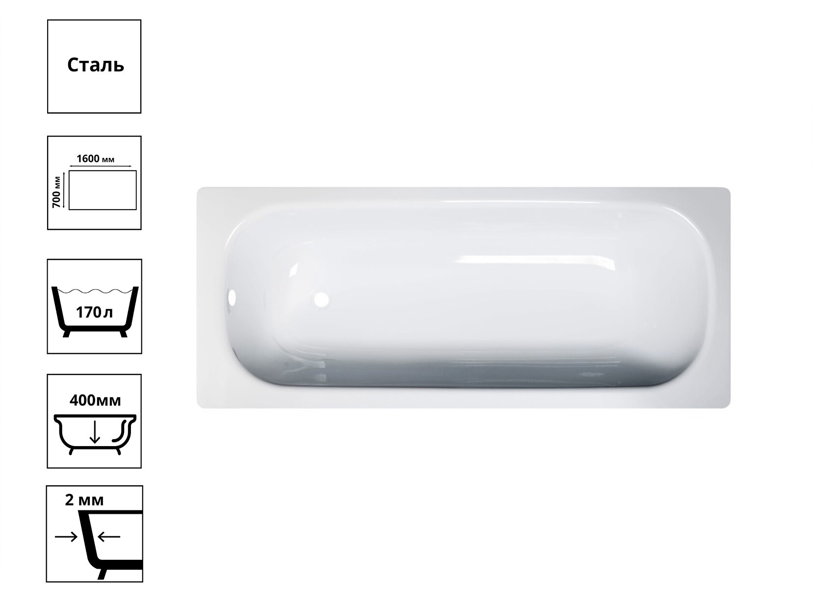 Ванна стальная Donna Vanna 1600х700 мм с ножками, с антибактериальным покрытием, белая орхидея