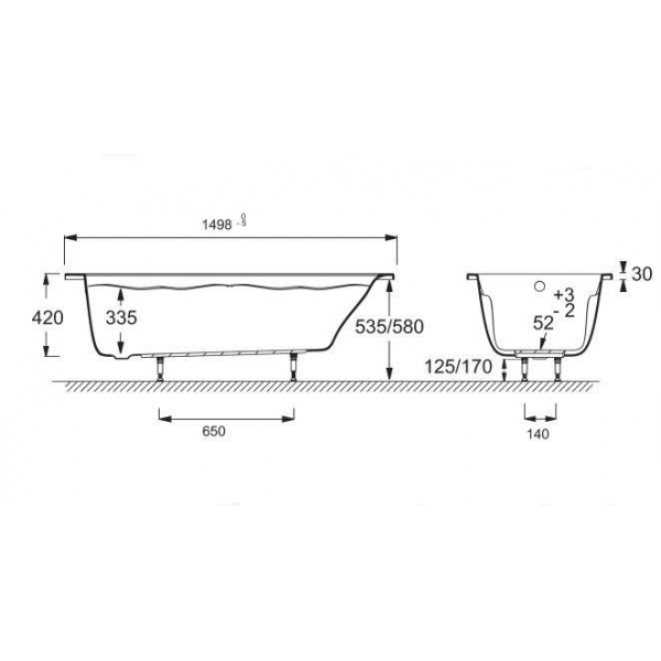 Ванна Roca Continental, 150 x 70 см, Чугун, 21291300R