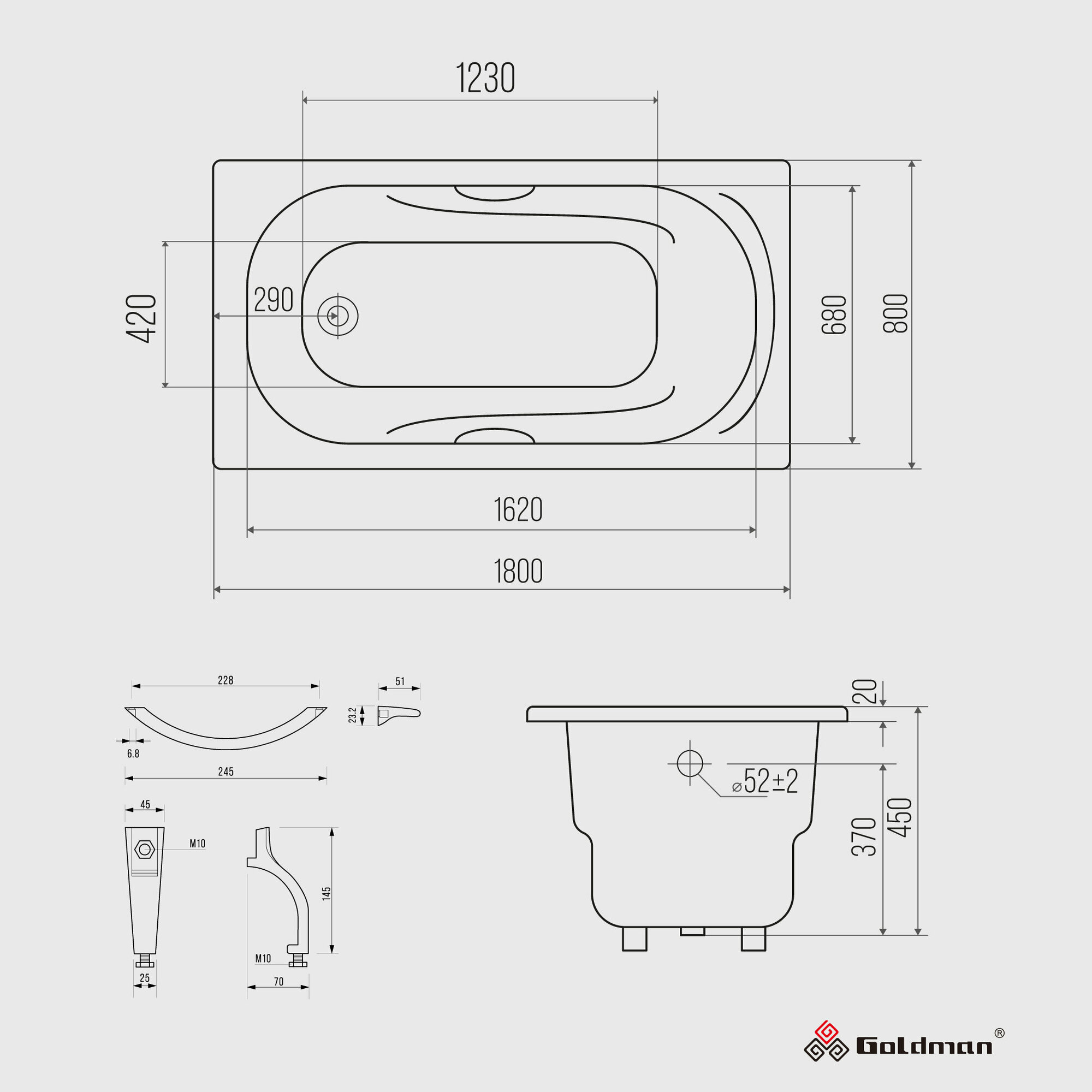 Ванна Goldman Nova 170x80, чугун