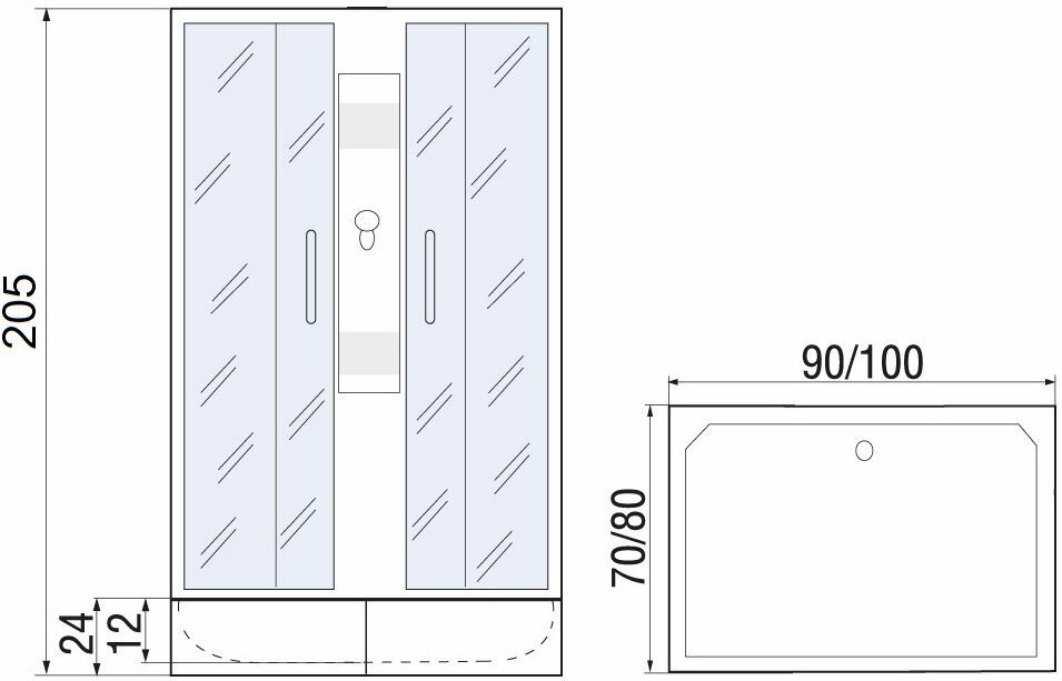 | Плюсы: | Высота ножек регулируется, две раздвижные створки, поддон средней высоты из акрила, непрозрачные двери |