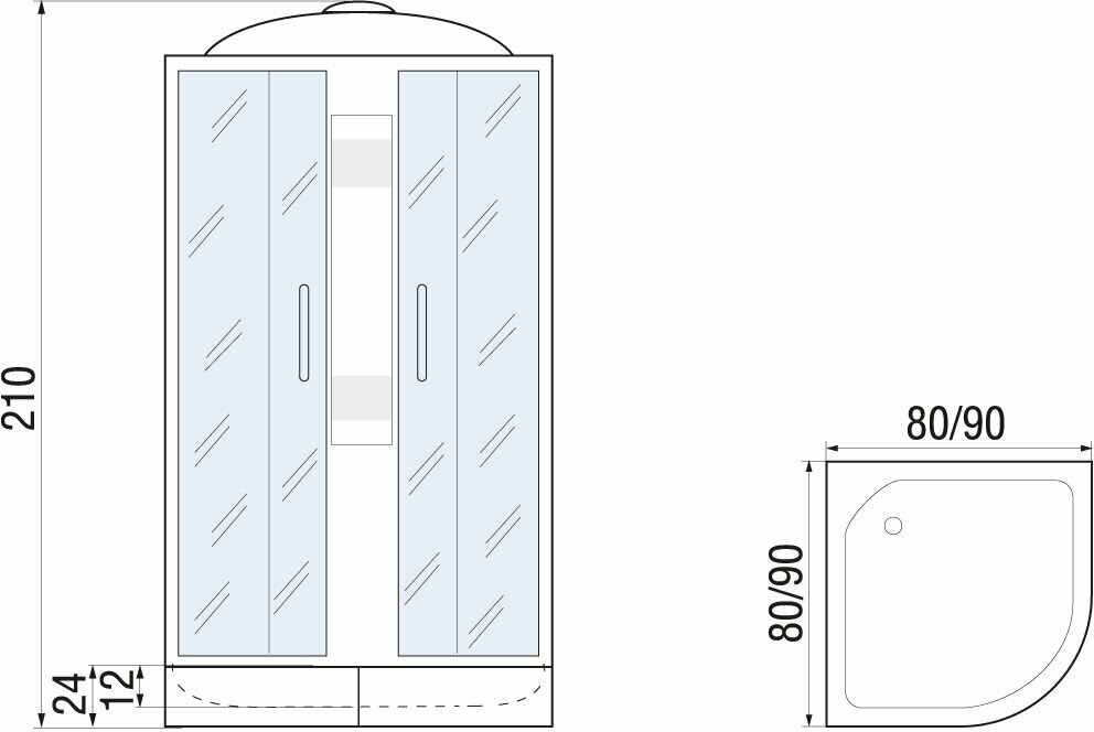| Плюсы: | Высокий поддон, матовые стекла, раздвижные двери. |