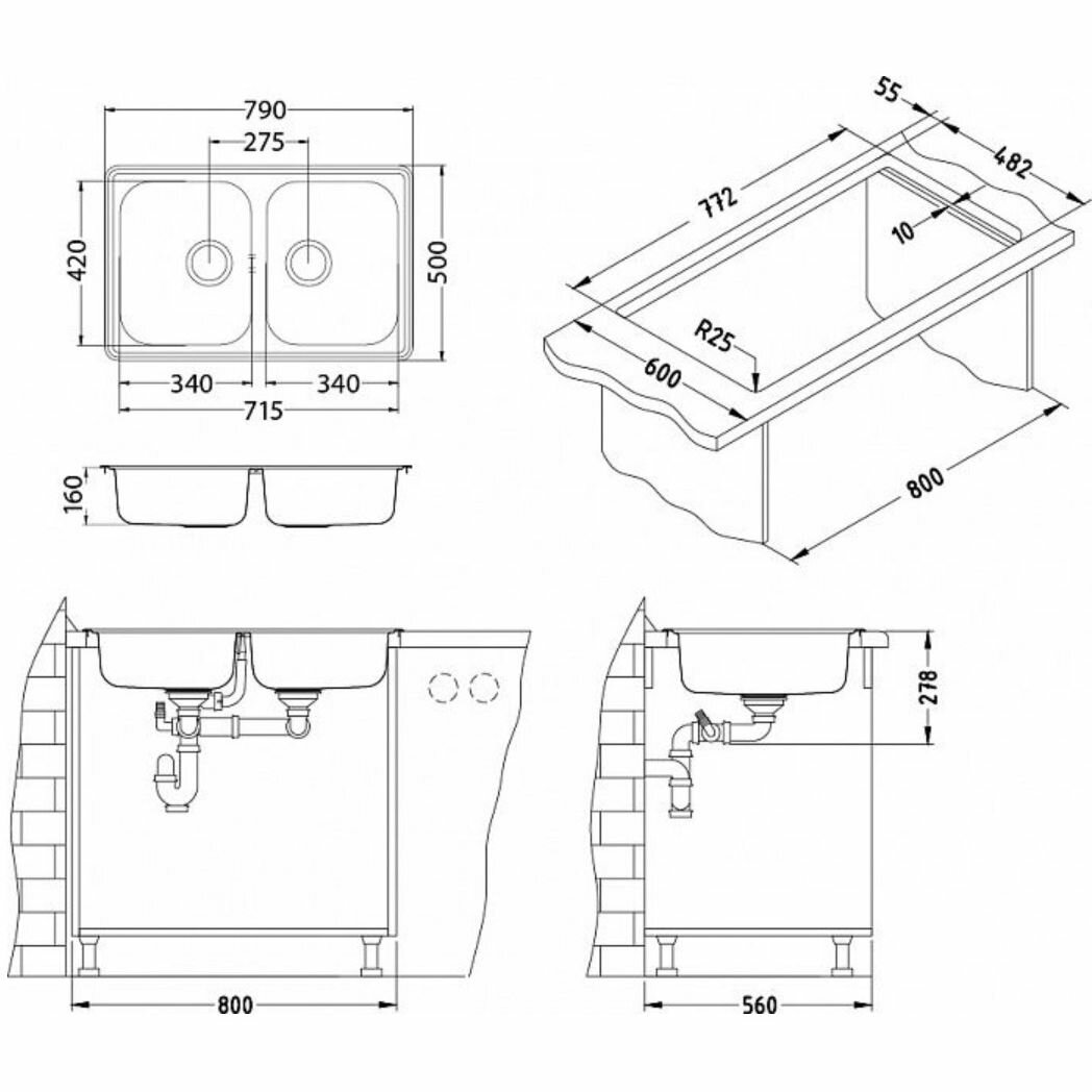 Кухонная мойка ALVEUS LINE 90 NAT-90 790X500 2X нерж.сталь (1066751)
