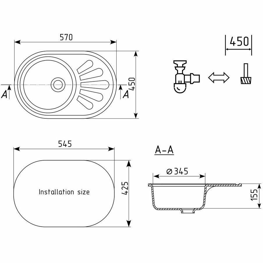 СохранитьМойка кухонная Ulgran из искусственного мрамора овальная U-107м, цвет: ультра-черный, база: 54.5х42.5 см, арт. U-107m-344 интересное: