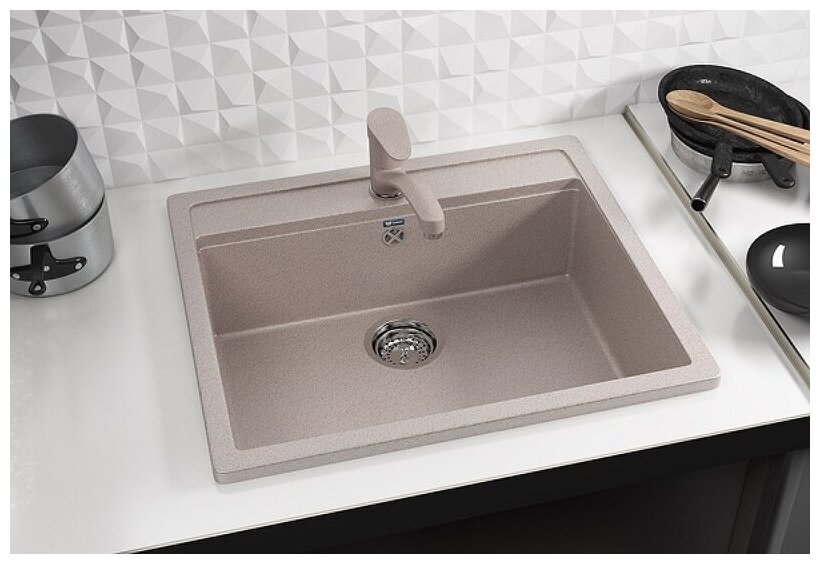 Мойка кухонная Ulgran из искусственного мрамора квадратная U-104, цвет: песочный, база: 53.5х47 см, арт. U-104-302