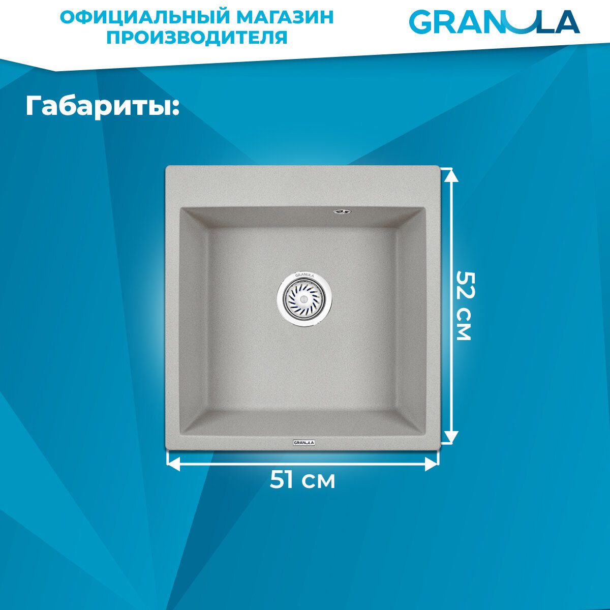 мойка квадратная GRANULA 510х520х190мм арктик кварц