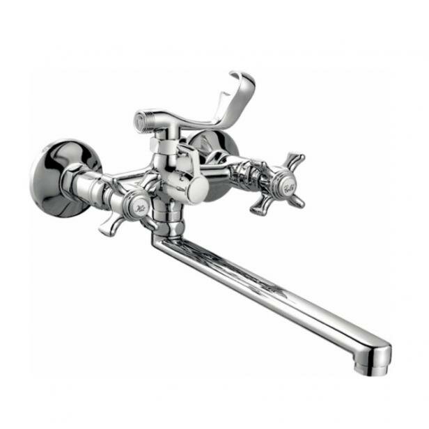 Смеситель для ванны,двуручковый, с длинным поворотным изливом в комплекте с лейкой