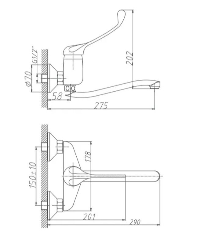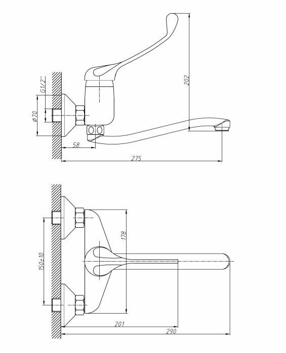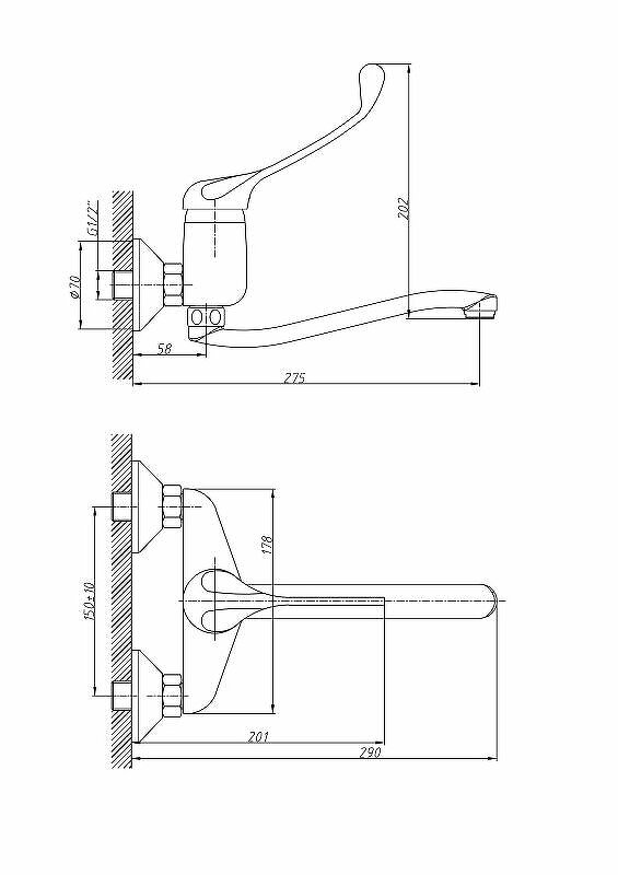 Смеситель настенный 40к HB4654 HAIBA медицинский S-нос