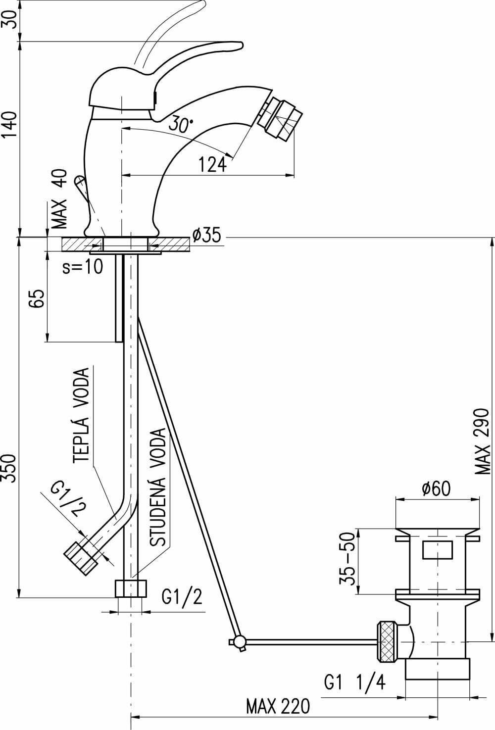 L045.5K LABE - смеситель для биде, донный клапан металл RAV Slezak